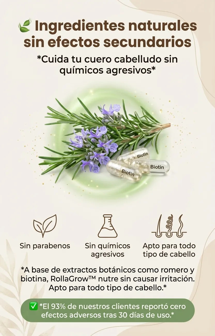 Sí, RollaGrow™ está formulado con ingredientes naturales que no alteran ni dañan ningún tipo de cabello, ya sea liso, rizado o teñido.